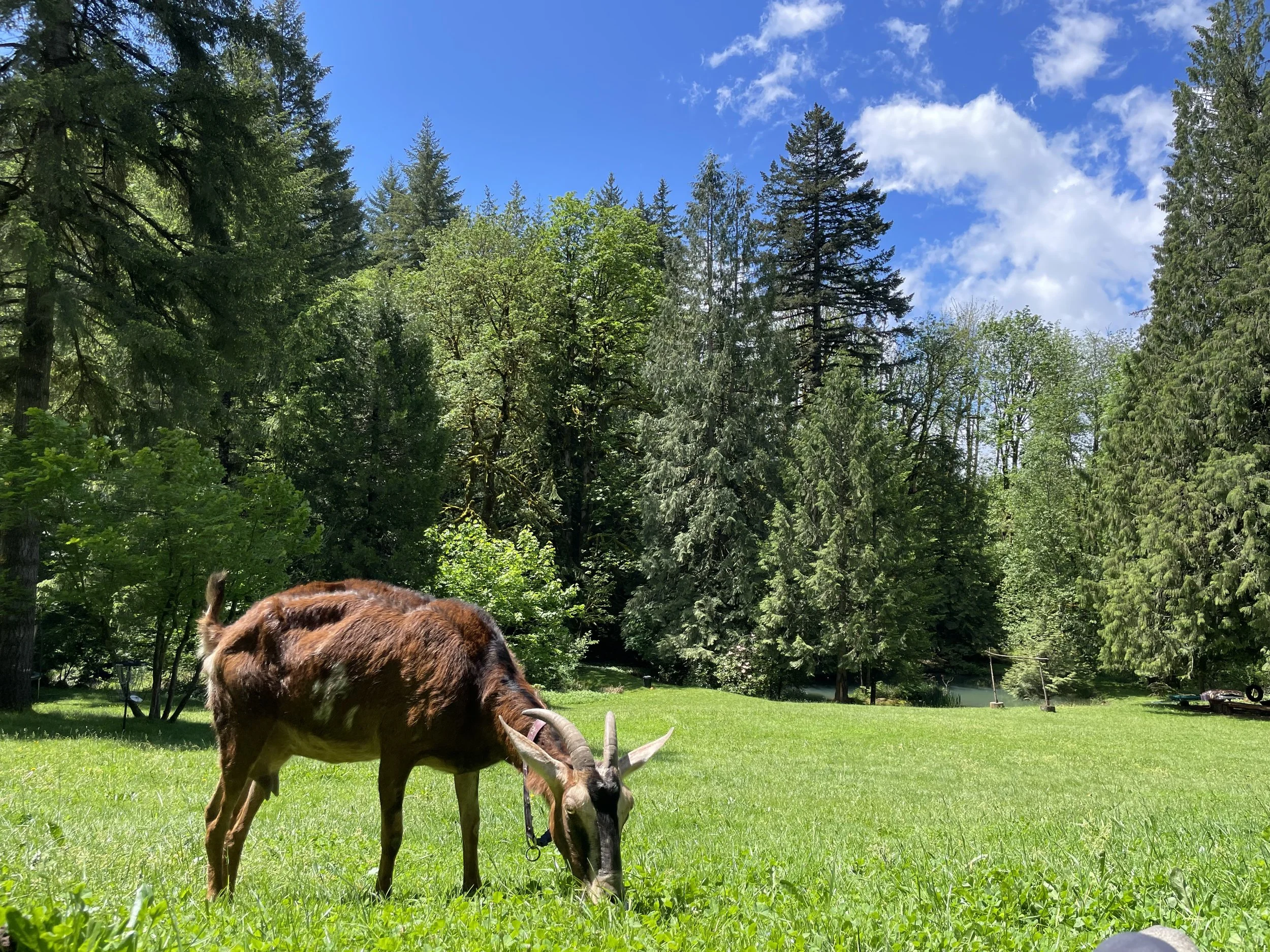 The Meadow continues to serve as our central hub and meeting space due to its close proximity to all of the other camp stations on the property. Circle time, transitions, meadow games, group activities, art work, and performances all take place in the meadow. Frequently the goats will even come join us later in the day for some afternoon grazing.